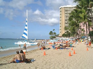 ワイキキビーチは、朝来た時とは打って変わって大変な人出であった。